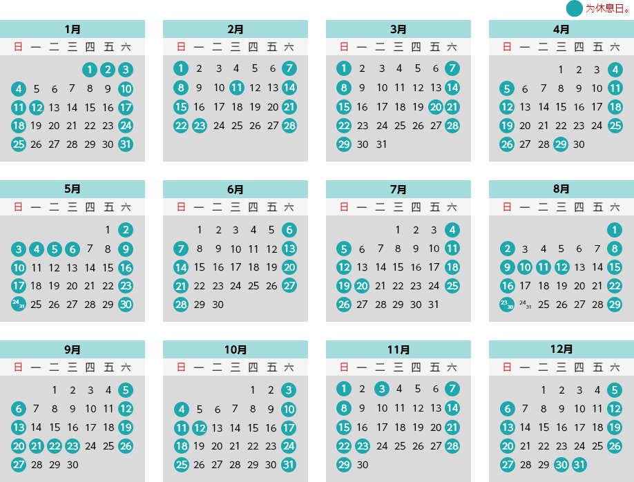 ※日历为日本国内据点的日历。